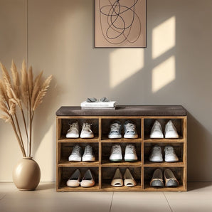 Kleiderregal - Garderobe - mit Schuhbank und Sitz - Metallrahmen - braun